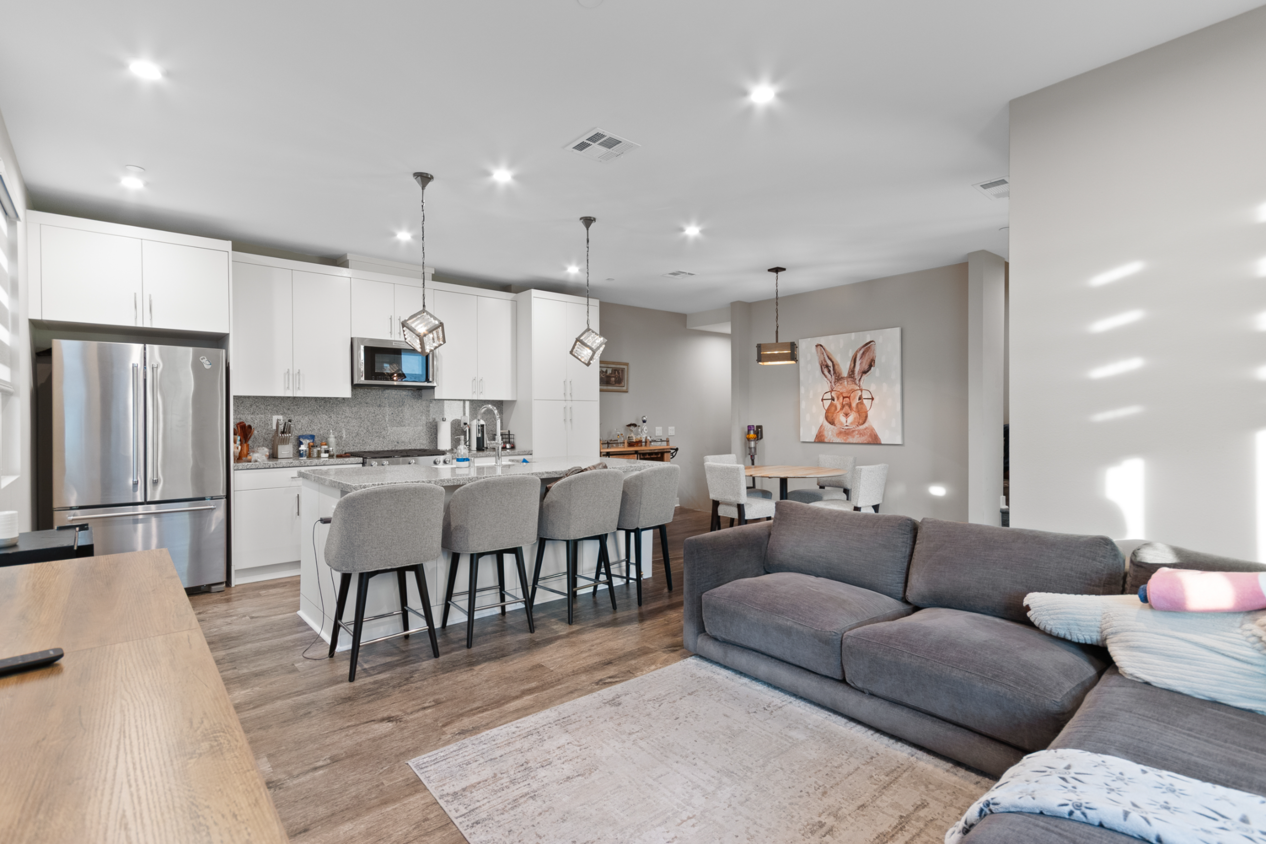 Welcome Home to your stunning three-story, end unit, 2024 build that perfectly blends style, comfort, and convenience. From the moment you enter, the open floor plan and recessed lighting create an airy, sophisticated atmosphere. Enjoy the convenience of a half bath, kitchen, living room, and dining area on one level. The brand new KitchenAid appliances gleam beneath sleek finishes, ready for your first dinner party or that late night snack run after catching a game at Angel Stadium or fireworks from Disneyland. When you are ready to retreat for the night, the top level has three bedrooms and two baths, giving ample room for every family member. With owned solar and a whole-house water filtration system, this home delivers modern efficiency without compromise. Each level flows effortlessly, showcasing thoughtful design and high-end details that make daily living a delight. Nestled in a gated community, you’ll enjoy peace of mind plus amenities like pool/spa, picnic area, and two dog runs for your furry companions. Come experience the perfect harmony of luxury and location — your next chapter begins here.